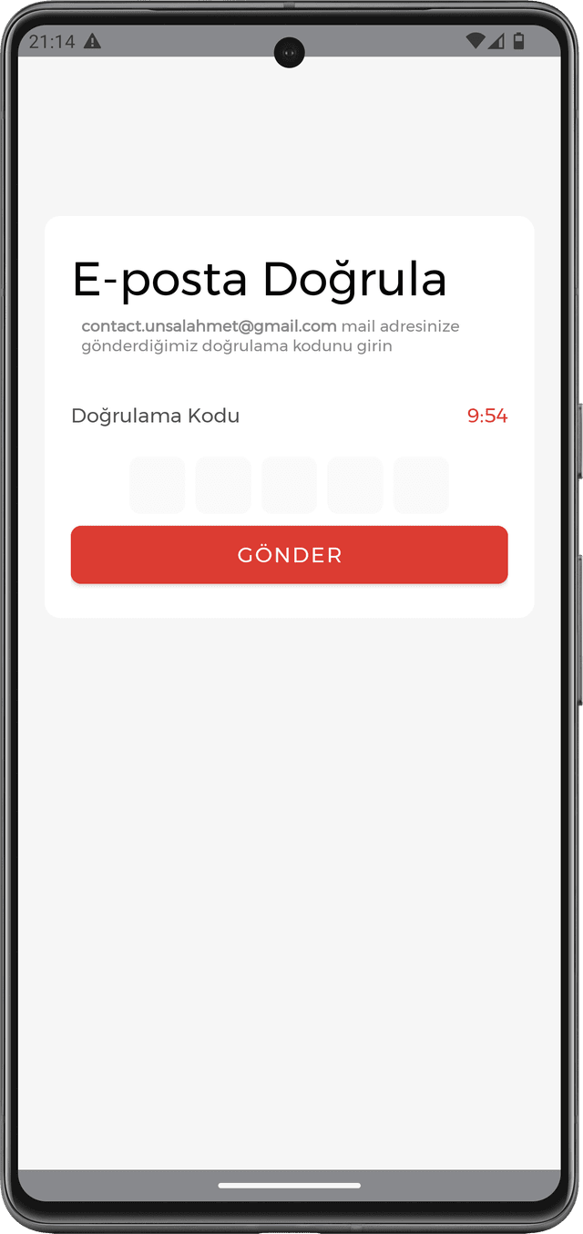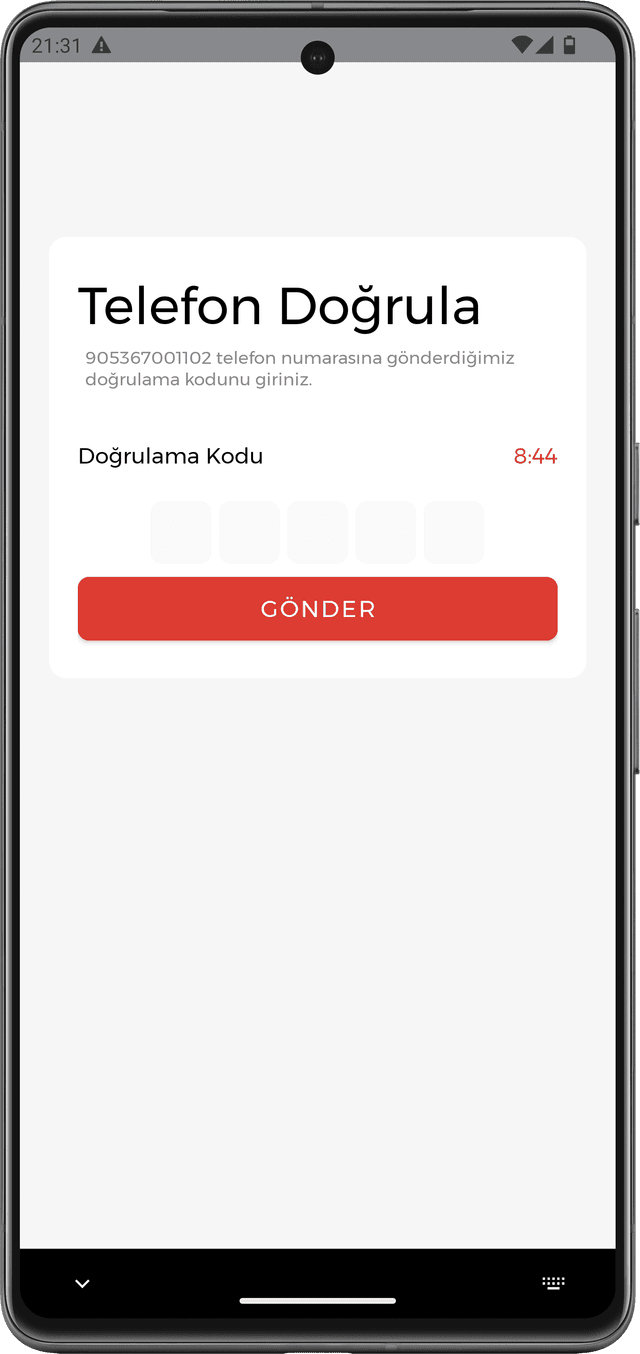 Not etmiş olduğunuz tek kullanımlık kodu verilen alana doldurun ve 'Gönder' butonuna basın.