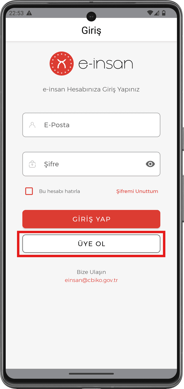 Giriş sayfasında bulunan 'Üye Ol' butonuna tıklayın.